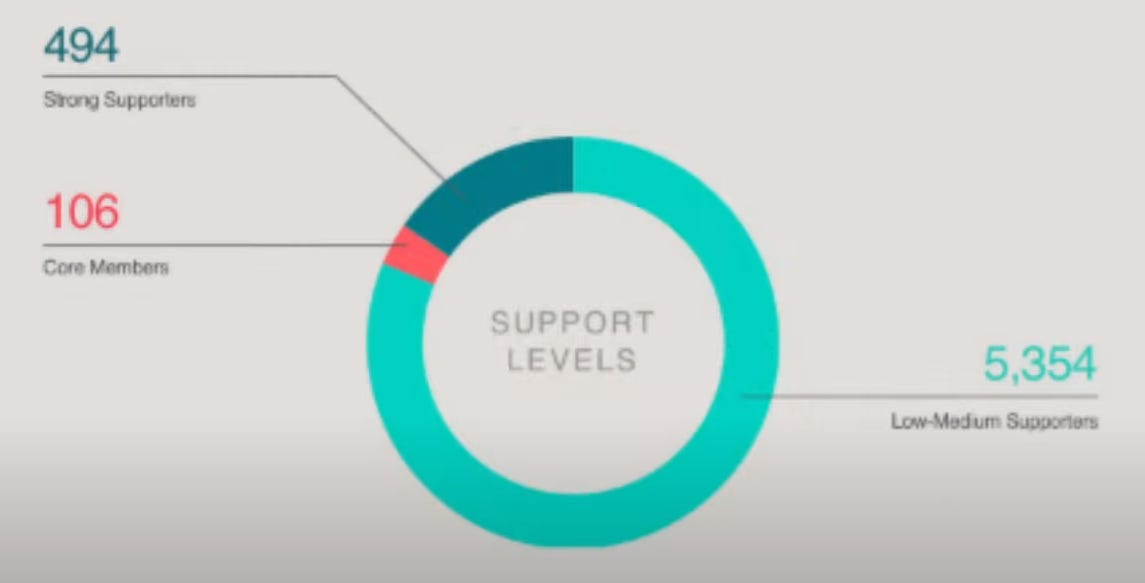 Los distintos niveles de miembros de una comunidad: tendrás miembros muy activos y que contribuyen más que otros. Cómo gestionarlos y enfocarte en el 20% (strong y core members) por su capacidad de escala.