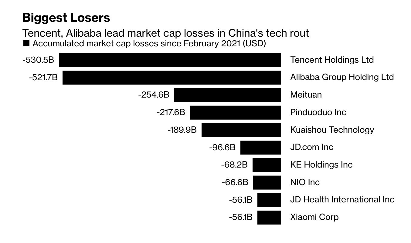 Sus grandes empresas tecnológicas (Alibaba, Tencent, JD) han perdido cerca de la mitad de su valor en bolsa en 2 años