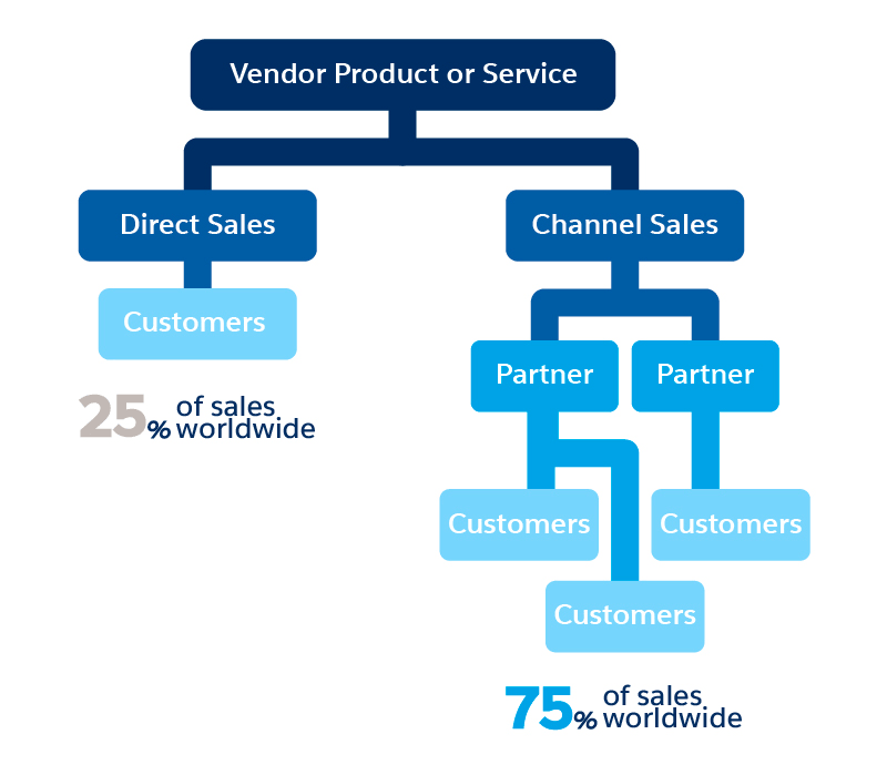 3) Sell-to (vender a): el partner agrupa tu tecnología con otros productos y servicios para crear un paquete de soluciones, que ellos venden y facturan. En la mayoría de los casos, la tecnología se integra en una solución con la marca del partner. Este proceso requiere descuentos para el socio, soporte de ventas, capacitación y formación y una estructura interna de gestión de cuentas de canal. Los partners tipo VAR y los Proveedores de Servicios Gestionados (MSPs) generalmente prefieren este modelo.